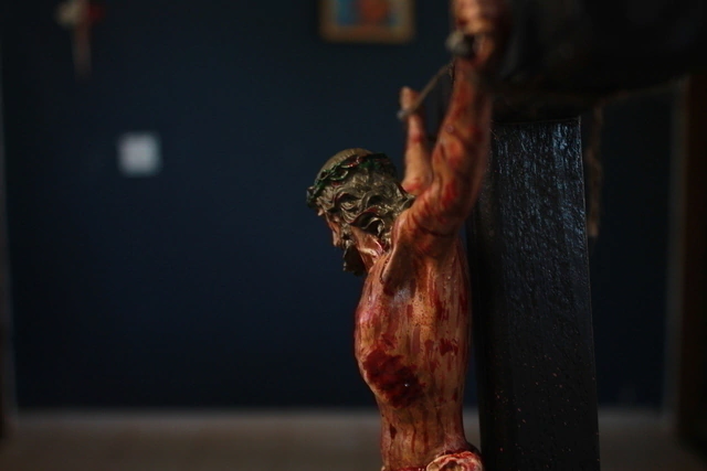 CRUCIFIXO BARROCO CHAGAS REALISTAS 40 CM PAREDE